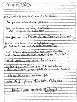 La segunda detención fue 4 días después, esta vez, junto a su hija Rocío. Fue cuando agentes de la Policía Judicial del Estado de Chiapas y el agente del Ministerio Público la forzaron a firmar una declaración en contra de su esposo, sin que ella supiera escribir ni leer. Permaneció aproximadamente trece horas detenida, sin asistencia legal.